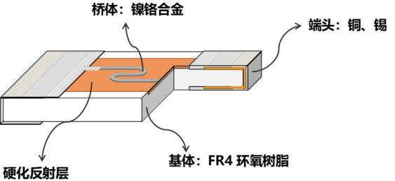 在極薄的鎳鉻合金材料上采用半導(dǎo)體薄膜蝕刻工藝制程的電阻(2~8Ω),通過(guò)過(guò)載電流使合金橋體發(fā)生拉弧并引燃點(diǎn)火藥,最終電能轉(zhuǎn)爆轟實(shí)現(xiàn)能量轉(zhuǎn)換的目的,也有“換能元”“起爆電阻”等叫法。